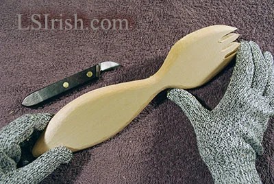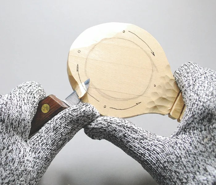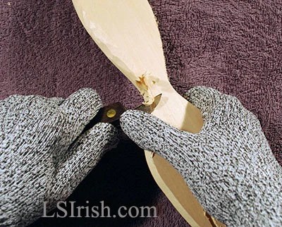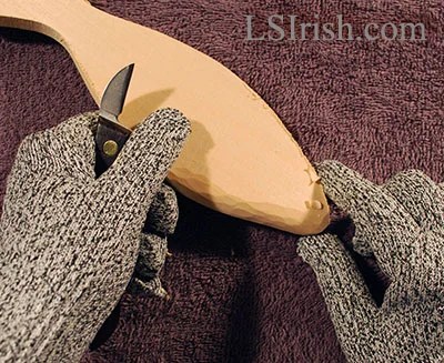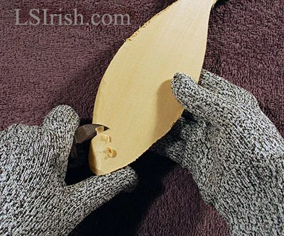 Use a v-gouge to cut vertical lines in the leather, creating white lines through the burned areas.