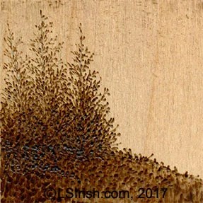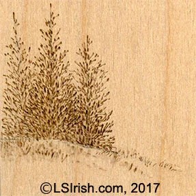 Let’s look at a few examples of how you can create both seasonal and weather conditions in your landscape pyrography burnings.