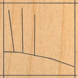 The pattern for these background trees is simply the line at the top of the grassy slope, and a line for each central trunk of each tree. Because the trees are created using a short, quick stroke with either the loop-tip or ball-tip pen, you only need a few lines to guide you as to where you will burn your pines.