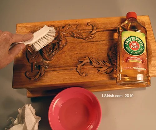 - Use a clean, lint-free cloth to rub away the dirty soap. You do not need to or want to rinse your work after you have wiped the wood. The oil in Murphy’s will refreshes your wood surface.