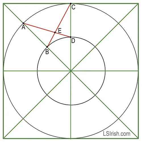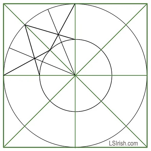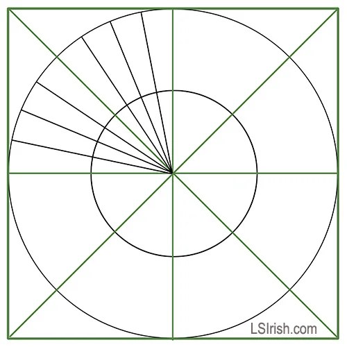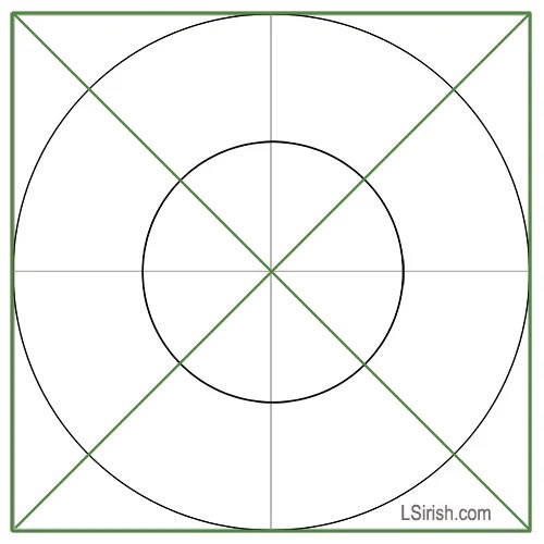 Keep the compass point at the center point of the square. Shorten the length of the open compass arm to one half the length of one diagonal line from the edge of the circle to the center point to make a small circle inside the large outer circle.