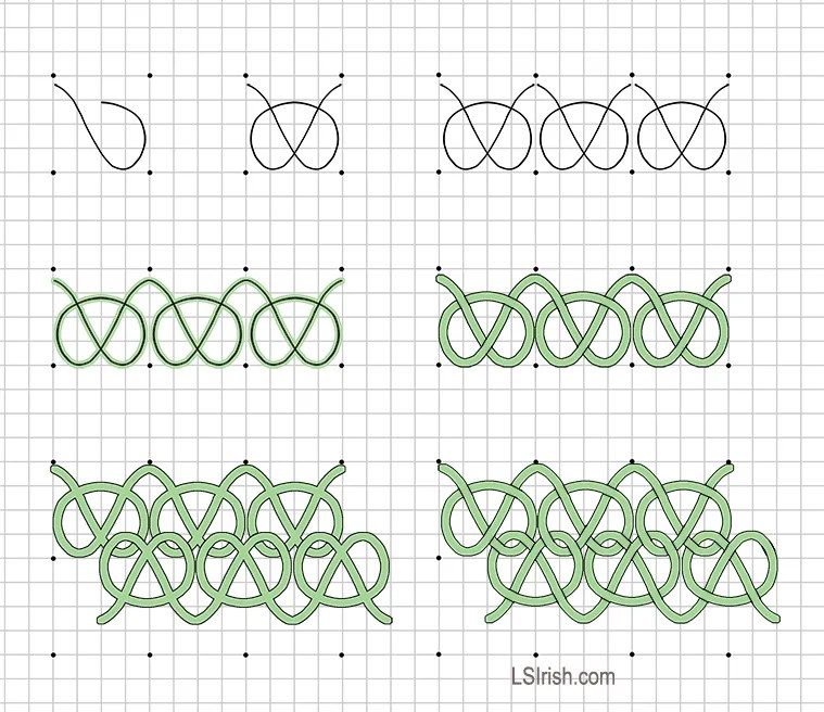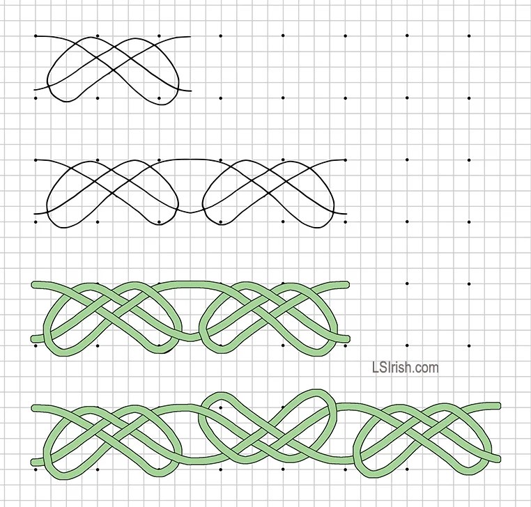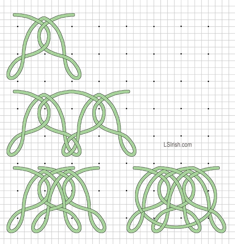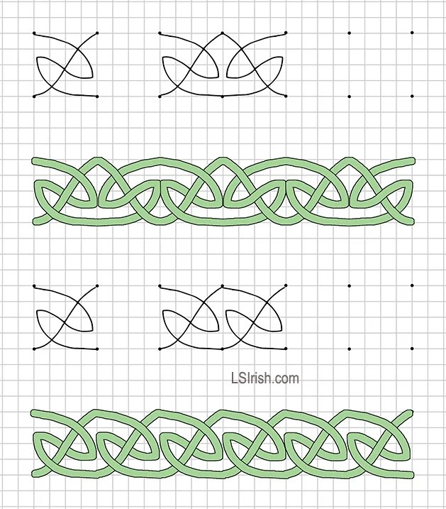 Celtic knot work patterns are easily adjusted in size and shape by using a simple grid-work chart.