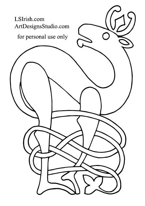 I have one more fun simple outline styled work to share with you. Its a Celtic deer design. While the above samples all use carefully controlled, uniform thickness lines, this hart uses thick and thin lines. As you move through the pattern make some areas of the line width thick then taper back to very thin. This adds a little dimension without losing the crisp, line art effect.