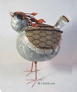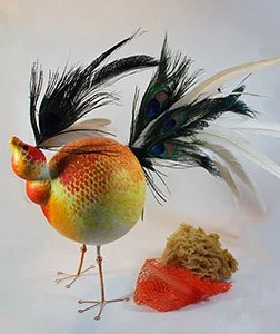 Free online gourd art beginner’s project Any natural fiber material can easily be collage to the surface of your gourd using archival white water-based glue. This fun bird house uses paper coffee filters, cotton cheese cloth, burlap, garden twine, and cotton cord to create a riot of texture. When the collage work is dry we will use oil pastels to brightly color the high ridges of the texture. |