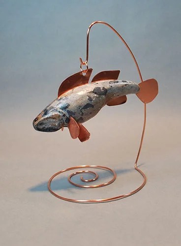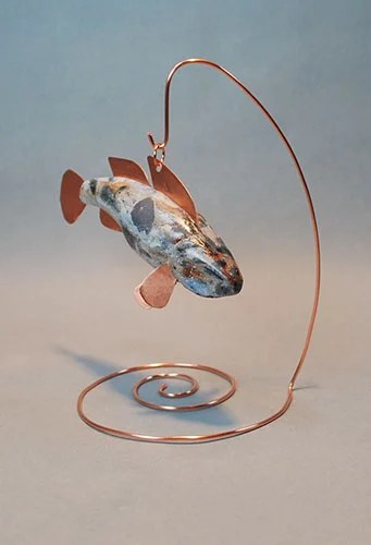 Step 9: After he has thoroughly dried give your fish two light coats of spray sealer. Cut, file, and insert your copper fins. He is ready to display.