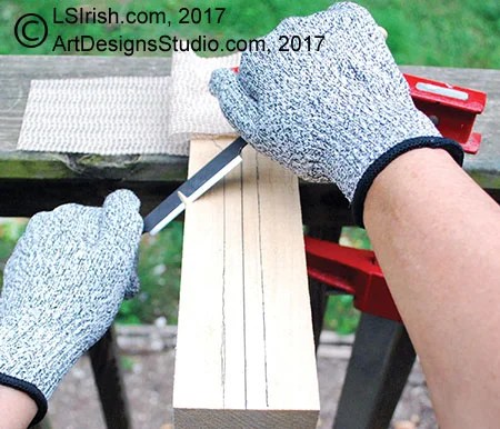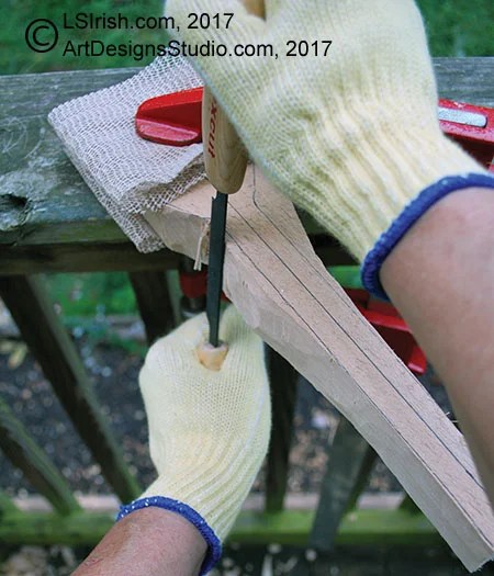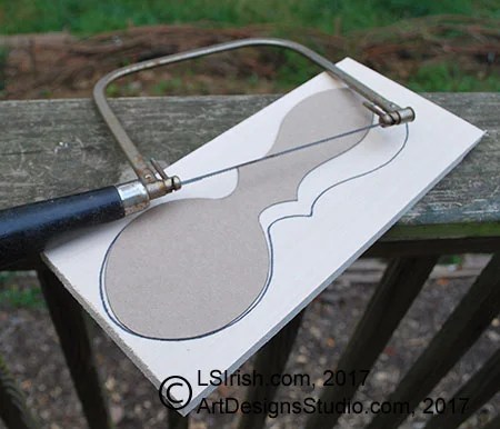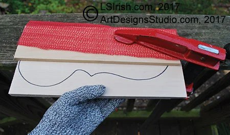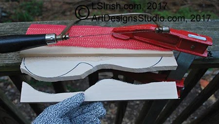 To use a coping saw for your rough cut steps you will need to secure your wood blank to a non-moving, non-rocking surface with plenty of open space to work the saw. Around my studio the most solid surface is my porch