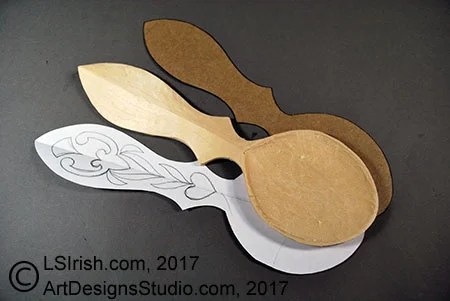 Using a scroll saw to cut your spoon blanks makes creating any rough-cut spoon blank quick and simple. The steps, directions, and instructions to using a scroll saw to cut your carving or pyrography blanks is featured in an in-depth project – Cross Crafting Seminar – an eight page project with free patterns, here on LSIrish.com.