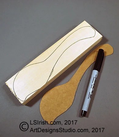Create a chipboard template of your spoon pattern. Lay the template onto your carving block and using a marking pen.